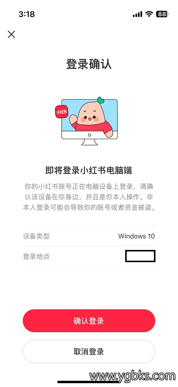 继续用小红书APP扫码,设备类型:Windows 10。(但是此时的设备其实并不是Windows 10)
